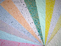 Жидкие обои,что это такое и как это выглядит,мы расскажем и покажем фото.Жидкие обои- это уникальный материал для оформления интерьера вашей квартиры или дома.Это смесь для художественного оформления,которая состоит из натуральных и естественных волокон ,таких как шёлк,целлюлоза,хлопок,минеральные добавки как кварц и декоративные добавки(бусы,блёстки,сердечки,звёздочки)и ещё много всякого.Цветовая гамма жидких обоев очень разнообразна, и насчитывается более 500 цветов и очень много добавочных компонентов на ваш выбор и их сочетания.После нанесения на стену у вас получается красивое текстурированное покрытие,которое,наряду с его замечательными эстетическими качествами,обладает хорошими акустическими и теплоизоляционными свойствами.Плюсов в этих обоях очень много,экологические,плохо возгораемые,дышащие,бесшовные,хорошо моются,и скрывают неровности стен. Можно обойти любые углы,а не мучиться как с бумажными.